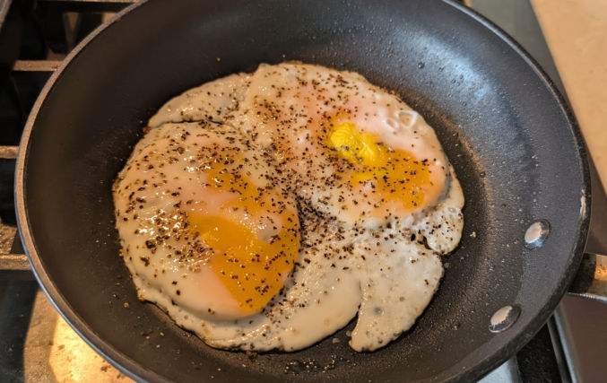 Transfer the rice to a plate, put the eggs on top, and garnish with some chopped cilantro.