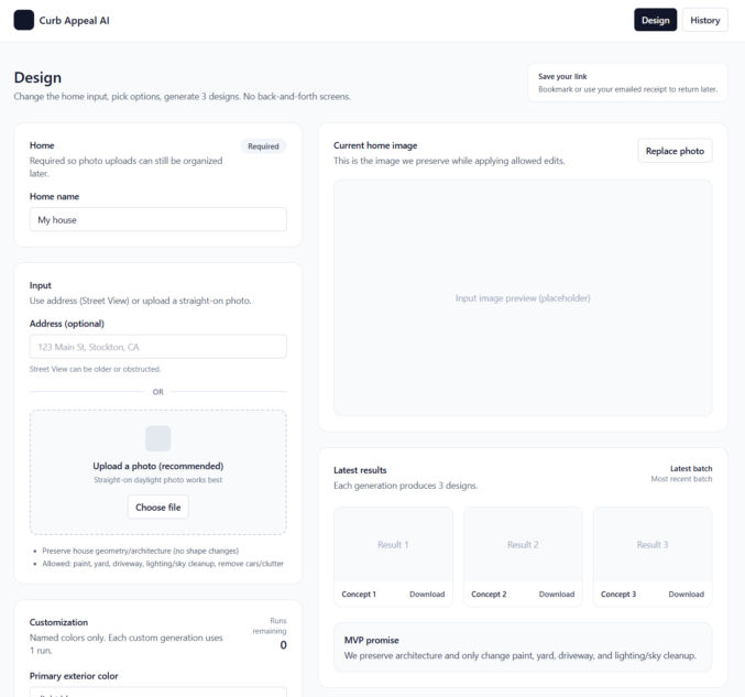 First, you need an app idea. Consult with ChatGPT regarding the business strategy, pros, cons, and anything else you have on your mind. If you are a solopreneur, it’s probably best to keep your app simple enough that you can manage it yourself. For example, you can create an app that lets people upload an image of the front of their home and redesign their curb appeal by changing exterior paint color, yard design, and driveway design using an AI text-to-image generator like Nano Banana Pro.