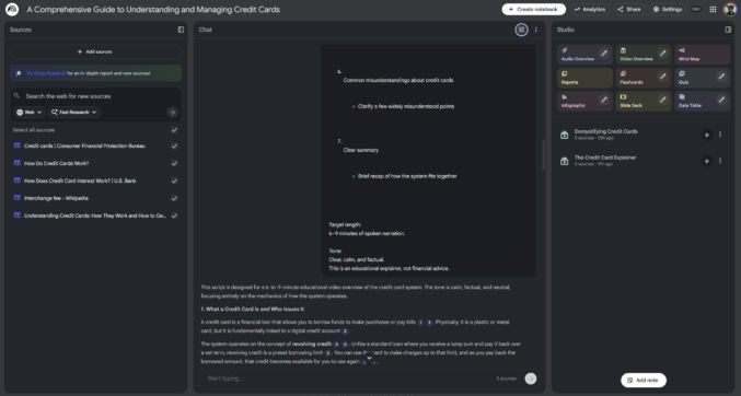 Gather the content for the overview video you want to create. The content can be local files (PDFs, text files, etc), copied text, and website URLs. In my case, I got these URLs to pages explaining how credit cards work: